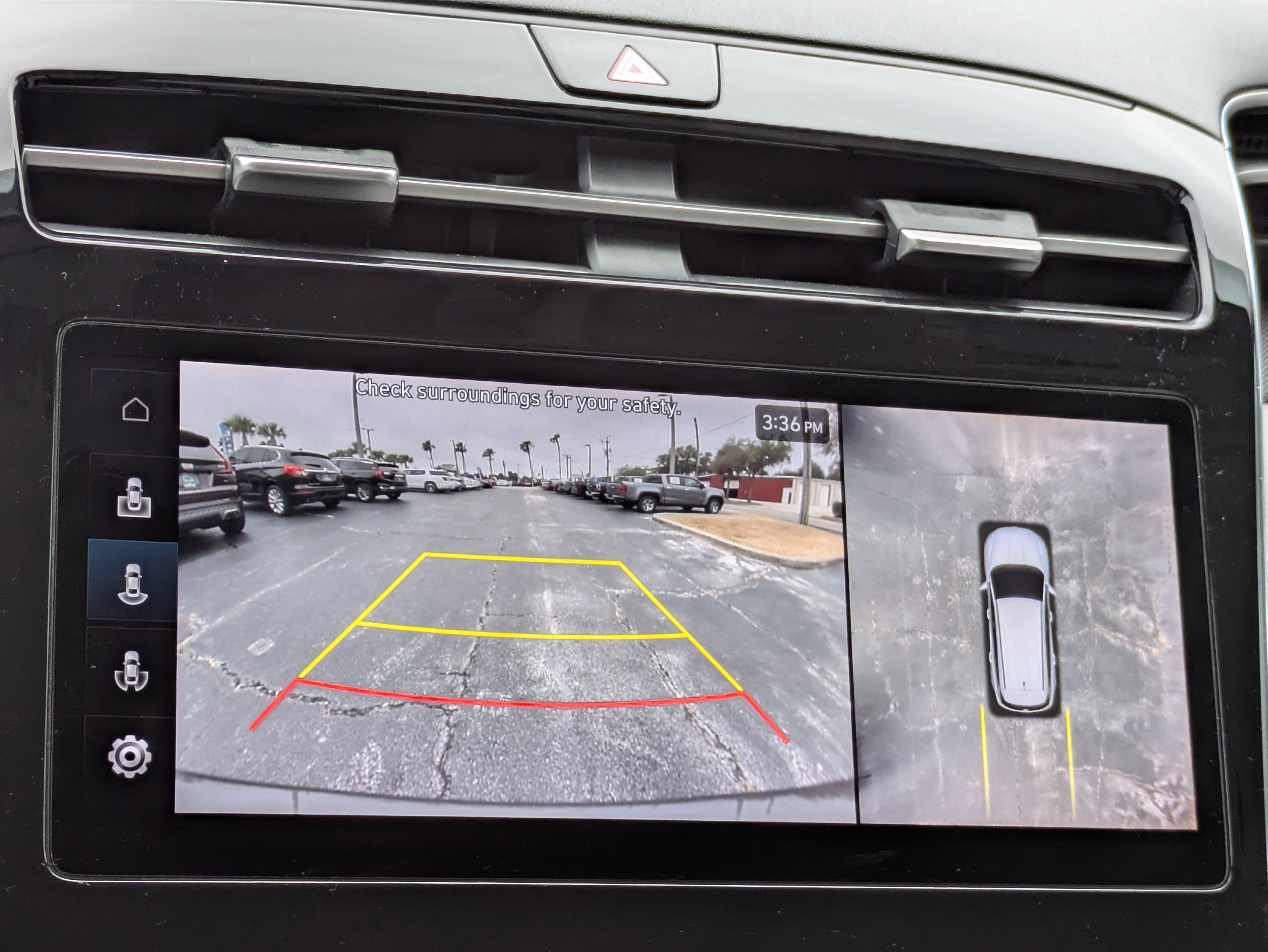 - Left side camera - Sidelong look. Left side camera displays images from the driver side of your vehicle on a central display screen. It's a second set of eyes for a clearer view, making certain maneuvers that much safer. Left side camera helps you make the right move.